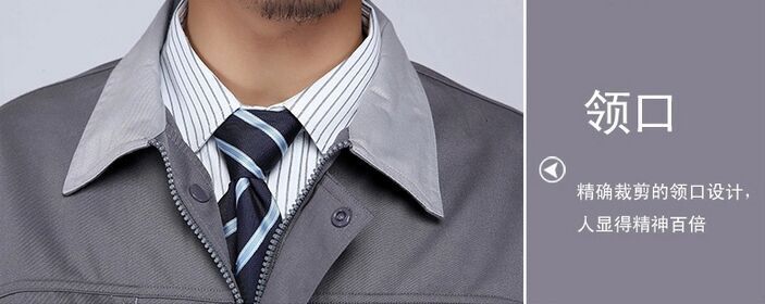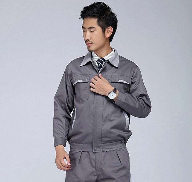 維修工作服以淺灰色為主色,口袋處用下搭式設計,黃色拼接,袖口做工精細,走線嚴密,結實耐磨時尚插袋,精細袖口,精致筆袋,松緊式下擺。