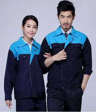 JL-QD264東莞廠服以藏藍色為主色,胸前采用藍色撞色拼接,醒目,工作感強,走線細致,實用性強。左中腰間口袋均采用雙層設計,傾斜線條,穩重大氣 走線細致,精細袖口,精致筆袋,夾克式下擺。